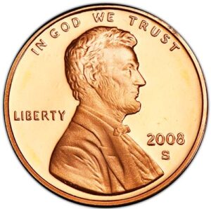 Is a one cent coin 1/100 of a dollar that has been struck by the United States Mint