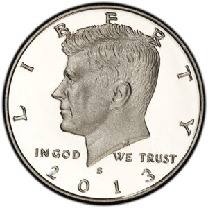 Obverse: The obverse shows a portrait of John Fitzgerald Kennedy, the youngest-ever-elected president. United States Mint Sculptor-Engraver Gilroy Roberts based this profile on a portrait prepared for Kennedy presidential medal. Roberts created this design immediately after Kennedy assassination.
