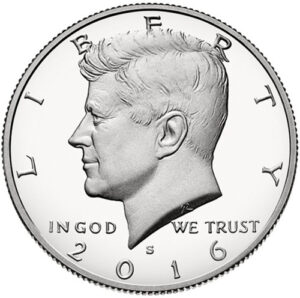 Obverse: The obverse shows a portrait of John Fitzgerald Kennedy, the youngest-ever-elected president. United States Mint Sculptor-Engraver Gilroy Roberts based this profile on a portrait prepared for Kennedy presidential medal. Roberts created this design immediately after Kennedy assassination.