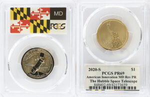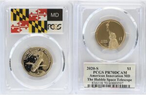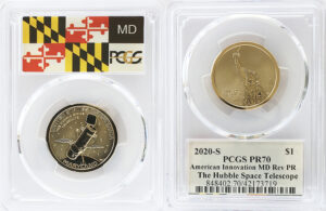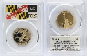 2020 Certified BU, Proof, and Reverse Proof Maryland American Innovation Dollars Hubble Space Telescope
