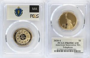 2020 Certified BU, Proof, and Reverse Proof Massachusetts American Innovation Dollars Telephone